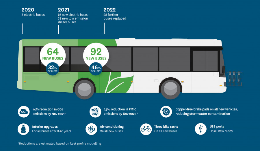 The new contracts retain a portion of the existing fleet and enable their gradual replacement with low emission and zero emission buses. Also included is an option for us to enable a faster transition to an even greater number of low emission vehicles, if the community, through the upcoming Long-Term Plan 2021-2031 consultation, supports this.