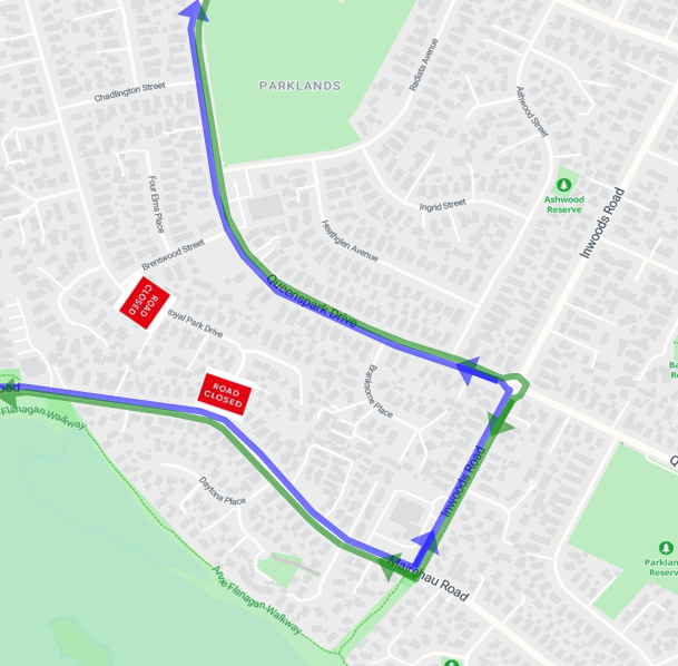 Buses travelling toward Pegasus and Waikuku will detour from Silverstream Blvd to Island Rd, Audley St, Sneyd St then to Adderley Tce to resume normal route. Passengers should use bus stops 53417 on Island Rd or 53349 on Silverstream Blvd.