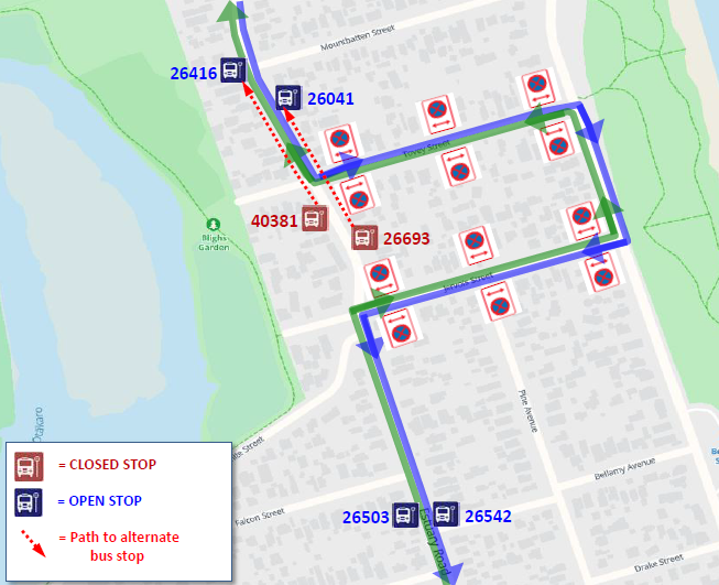 From 4pm Monday 13th October there will be road works on Rookwood Ave to facilitate power pole repairs that will require the Route 60 service to detour from its usual route while signage is in place.